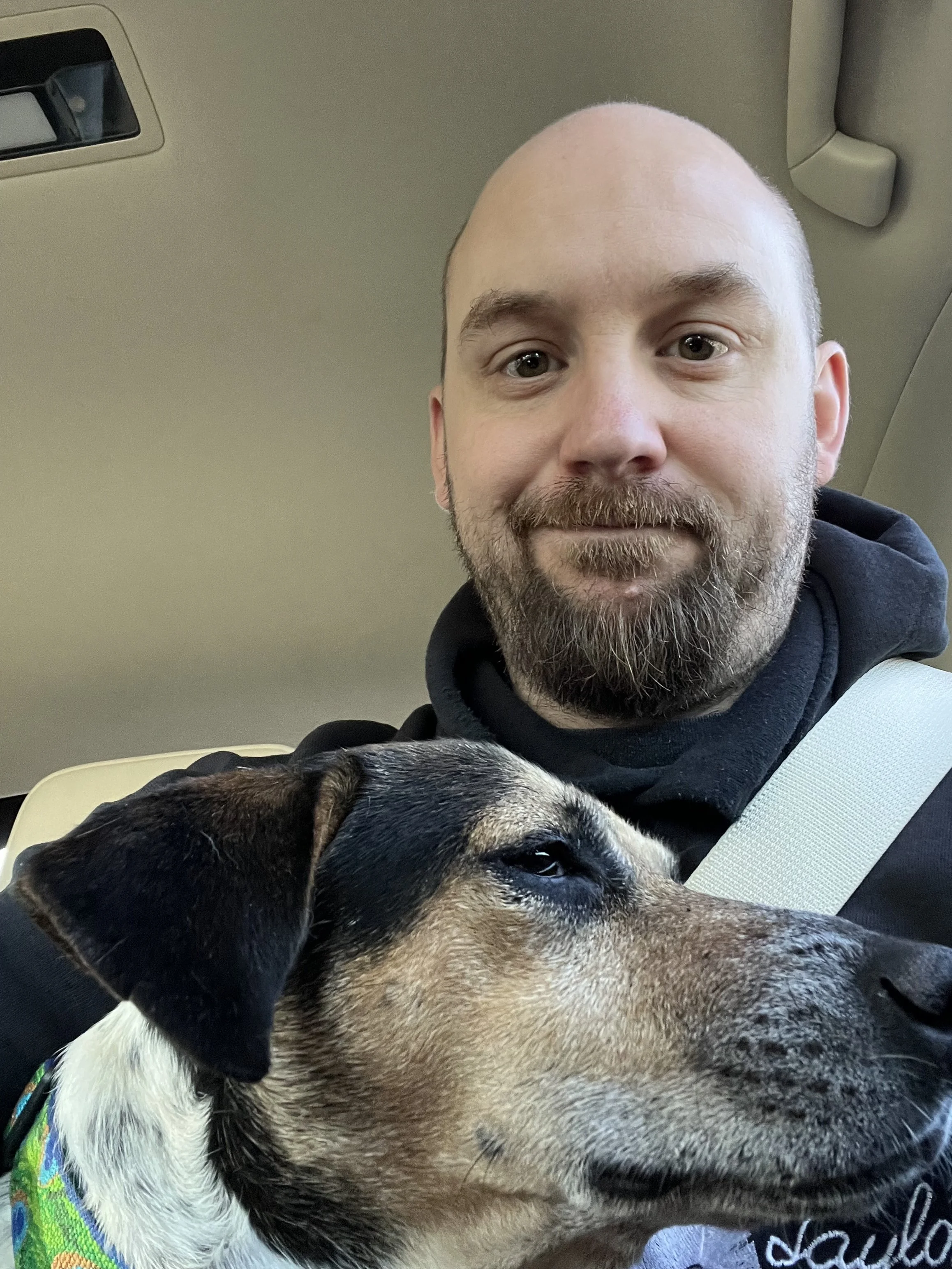 That’s me with Kirby. Kirby’s the dog. He’s refusing to look at me because he just got some teeth pulled. As you can expect, he didn’t like it.